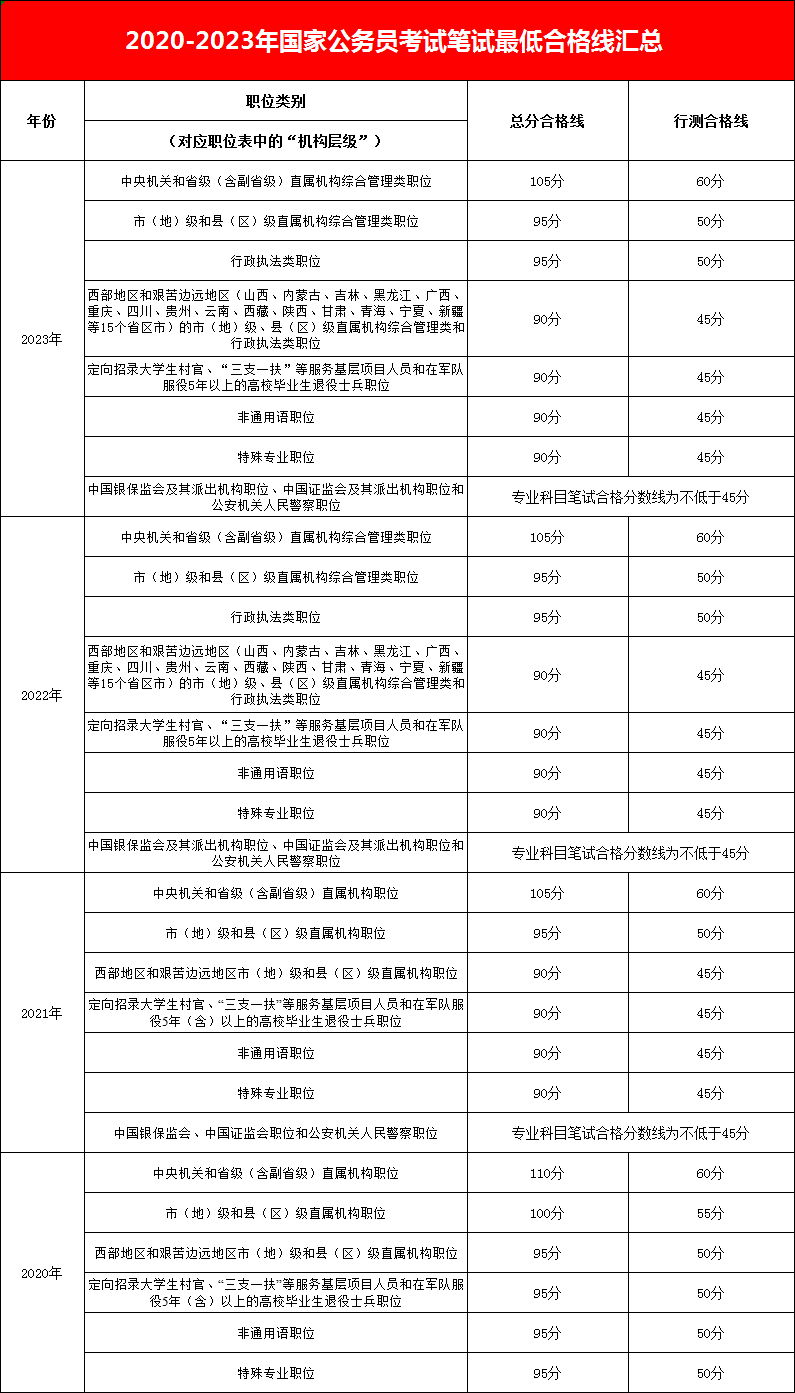 中央機關(guān)及其直屬機構(gòu)2023年度考試錄用公務員筆試成績和合格分數(shù)線公布,具體如下: