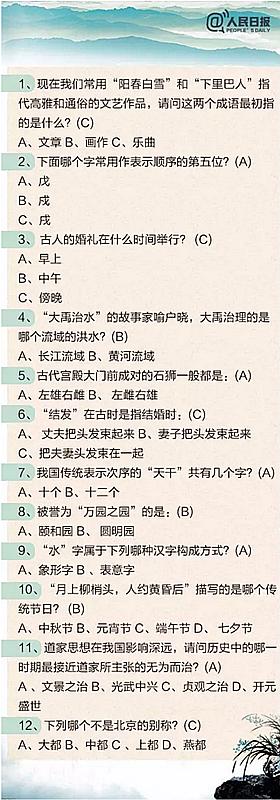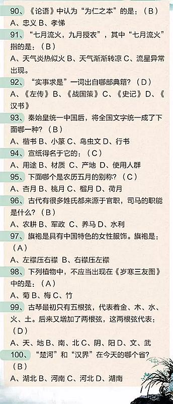 2018年公務(wù)員考試必看:100道中國文化知識(shí)題