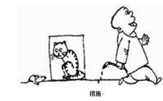 4、漫畫題 地上有一只老鼠,有一個(gè)人在墻上畫了一只貓,旁邊寫著“措施”,然后這個(gè)人就走了。談?wù)勀愕目捶ā?/span>