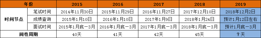 2019國家公務(wù)員考試筆試已于12月2日結(jié)束,那么,2019國考成績什么時(shí)候出呢?按照以往國考成績查詢時(shí)間預(yù)測2019國考成績查詢時(shí)間將在2019年1月中下旬左右,在此,小編附上歷年國家公務(wù)員考試成績查詢時(shí)間,希望能幫助各位考生做好面試備考的準(zhǔn)備。