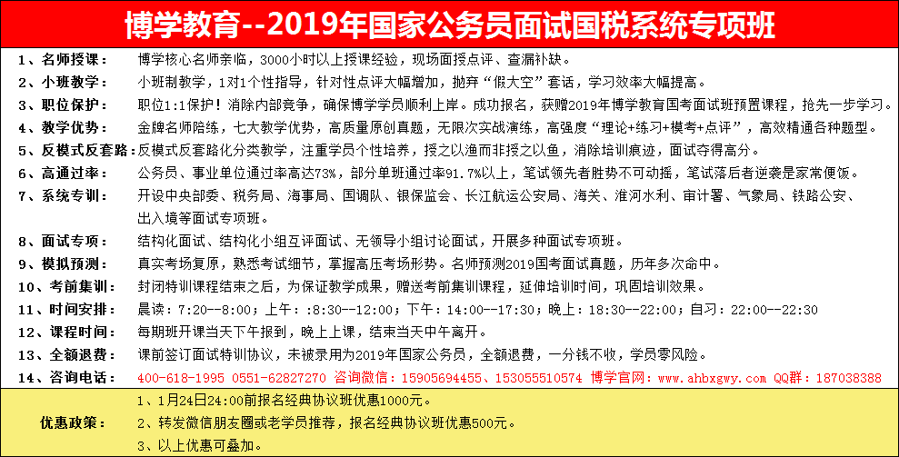 詳見協(xié)議(包括培訓(xùn)費、教材費、住宿費、餐費、水果點心費等一切費用)。學(xué)員無論任何情況未被錄用為2019年國家公務(wù)員,我校將退還全部費用。